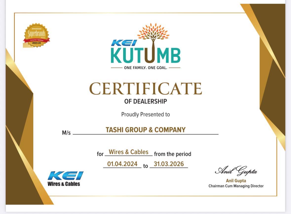 Tashi Group & Company takes pride in maintaining the highest standards of quality, safety, and service across all our operations. Over the years, our dedication to delivering certified, reliable, and industry-approved electrical solutions has earned us multiple recognitions from leading brands and institutions.